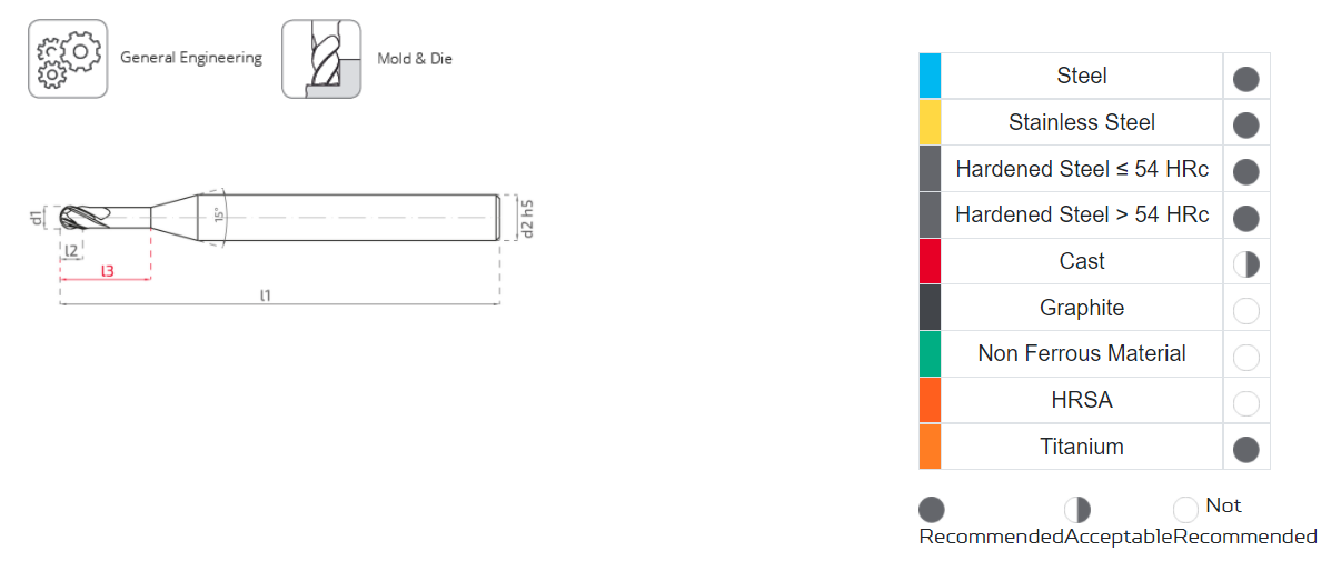| Material | Shoulder Milling ap=0.10Ø /ae=0.20 - 0.10Ø Vc (m/min) |